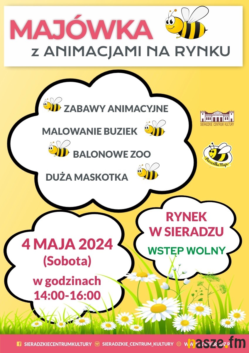 Sieradzkie Centrum Kultury zaprasza małych i dużych mieszkańców miasta w sobotę 4 maja na Rynek, gdzie od godz. 14:00 zaplanowano popołudnie pełne animacji.