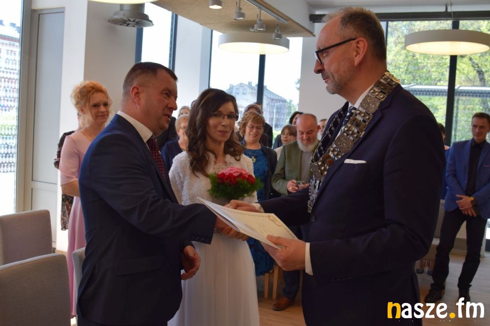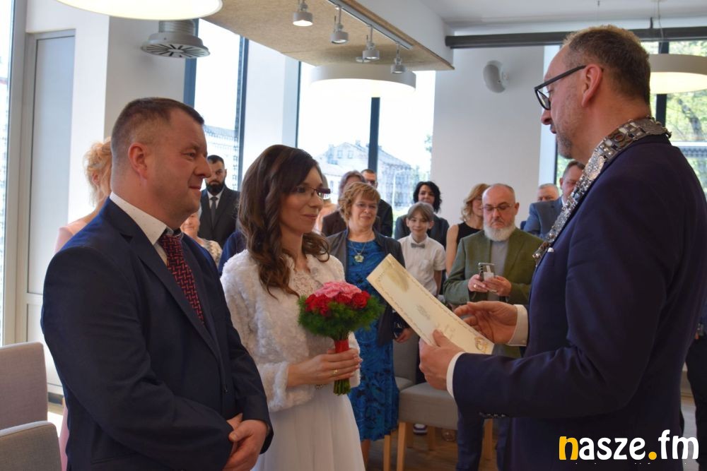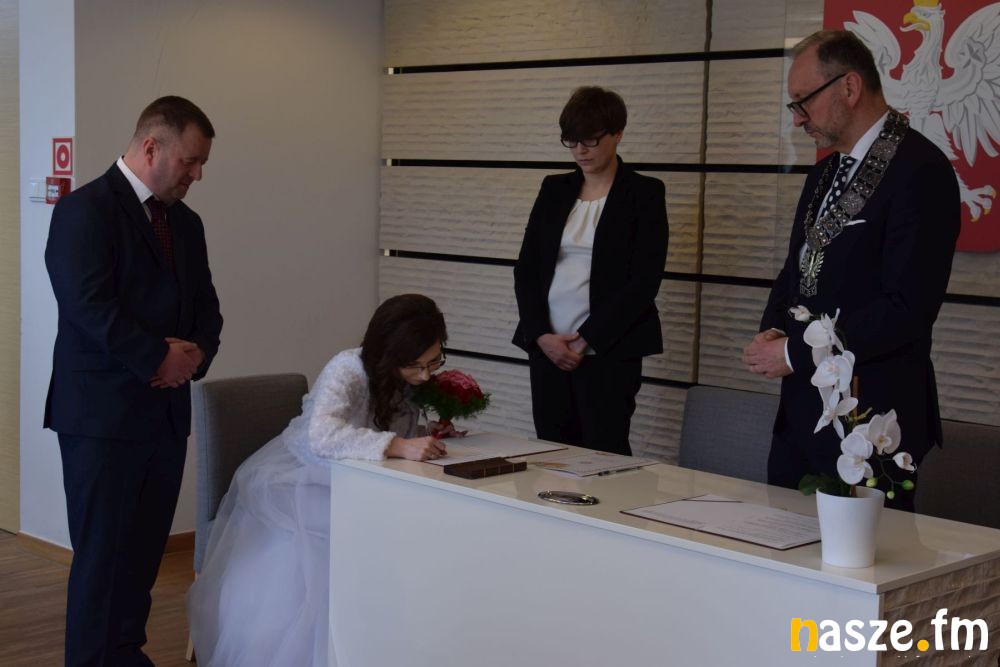 Tomasz Matuszewski i Emilia Maciejewska w sobotę, 27 kwietnia, wzięli ślub w Urzędzie Stanu Cywilnego w Zduńskiej Woli, a udzielił go prezydent Zduńskiej Woli Konrad Pokora