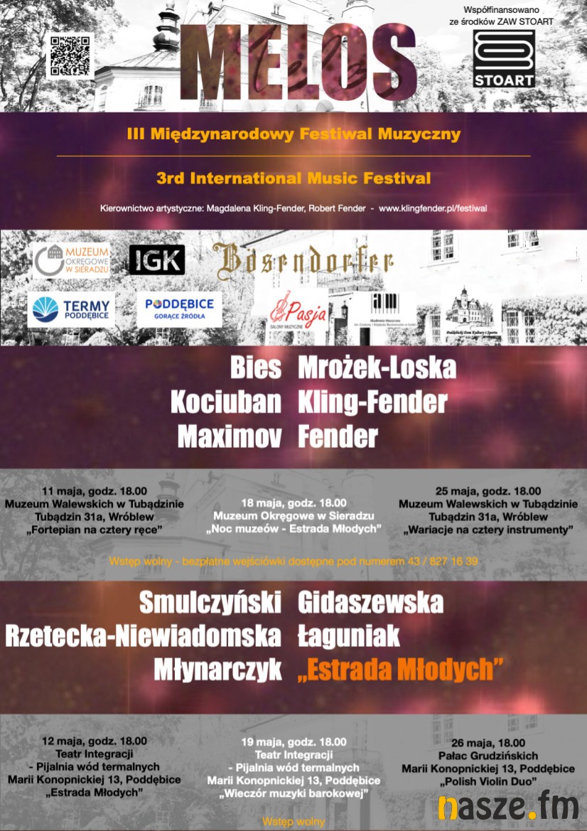 W tym roku ten festiwal odbędzie się po raz trzeci. Melomani będą mieli okazję posłuchać muzyki w kilku obiektach regionu łódzkiego: Muzeum Walewskich w Tubądzinie, Pałacu Grudzińskich oraz Pijalni Wód Termalnych w Poddębicach, które ze względu na swój wyjątkowy potencjał, z powodzeniem mogą zmienić się w sale koncertowe.