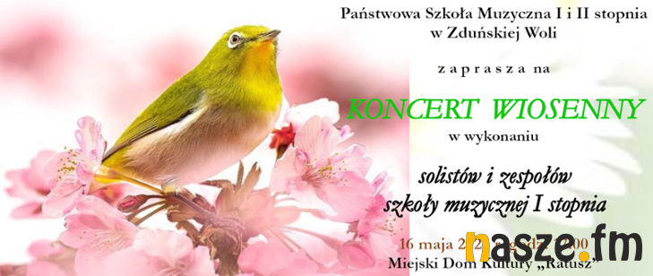 Państwowa Szkoła Muzyczna I i II st. w Zduńskiej Woli zaprasza na Koncert Wiosenny. Wydarzenie jutro, 16 maja, odbędzie się w Zduńskowolskim Centrum Integracji – Ratusz.