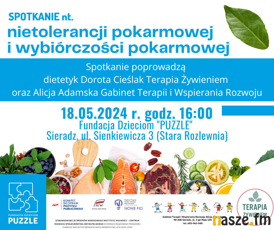 W najbliższą sobotę Fundacja Dzieciom Puzzle zaprasza rodziców oraz opiekunów dzieci na spotkanie nt. nietolerancji pokarmowej i wybiórczości pokarmowej