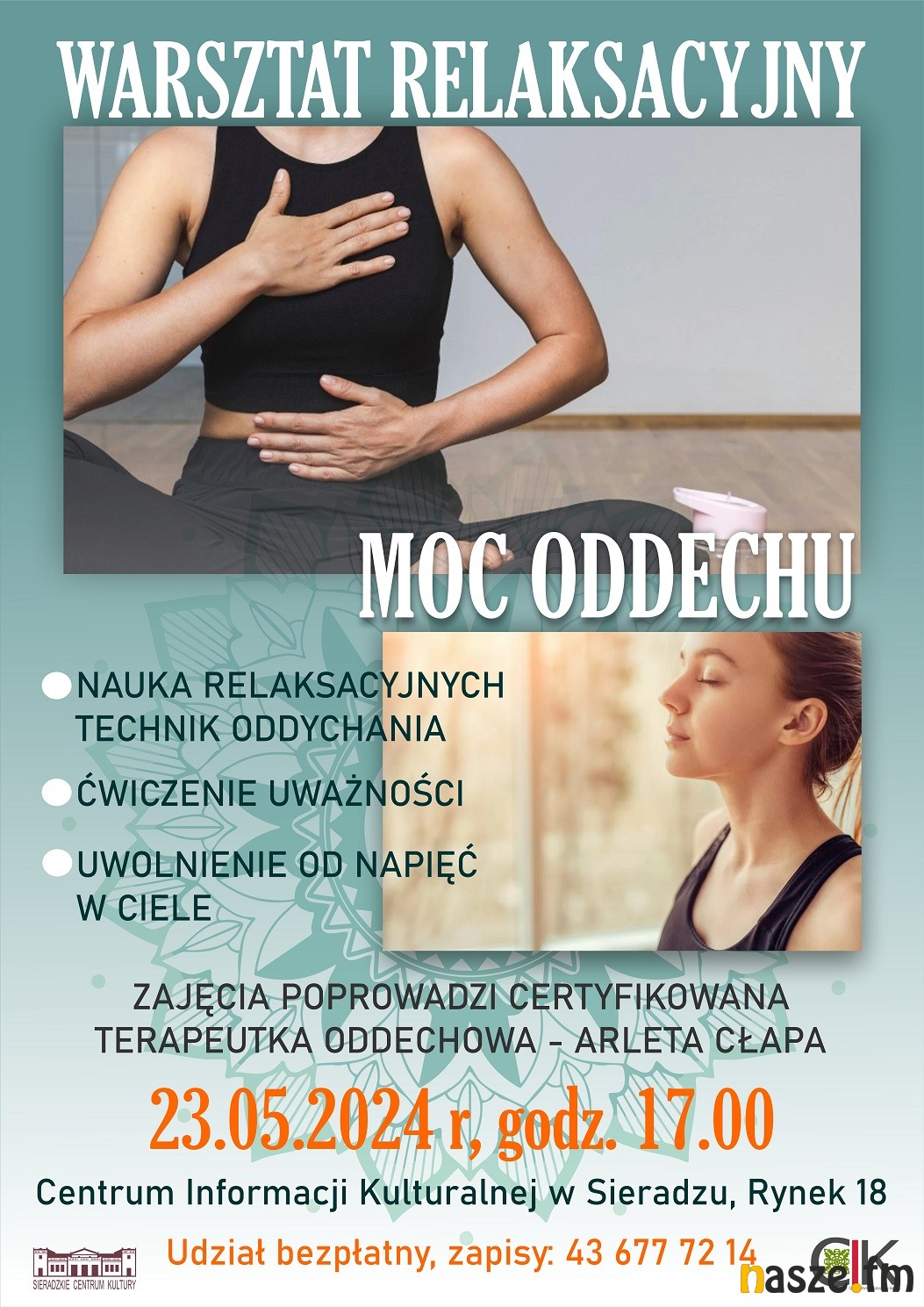 Jutro w Centrum Informacji Kulturalnej będzie można dowiedzieć się wielu interesujących rzeczy dotyczących oddechu. Na zajęciach, które poprowadzi Arleta Cłapa nie zabraknie też ćwiczeń praktycznych.