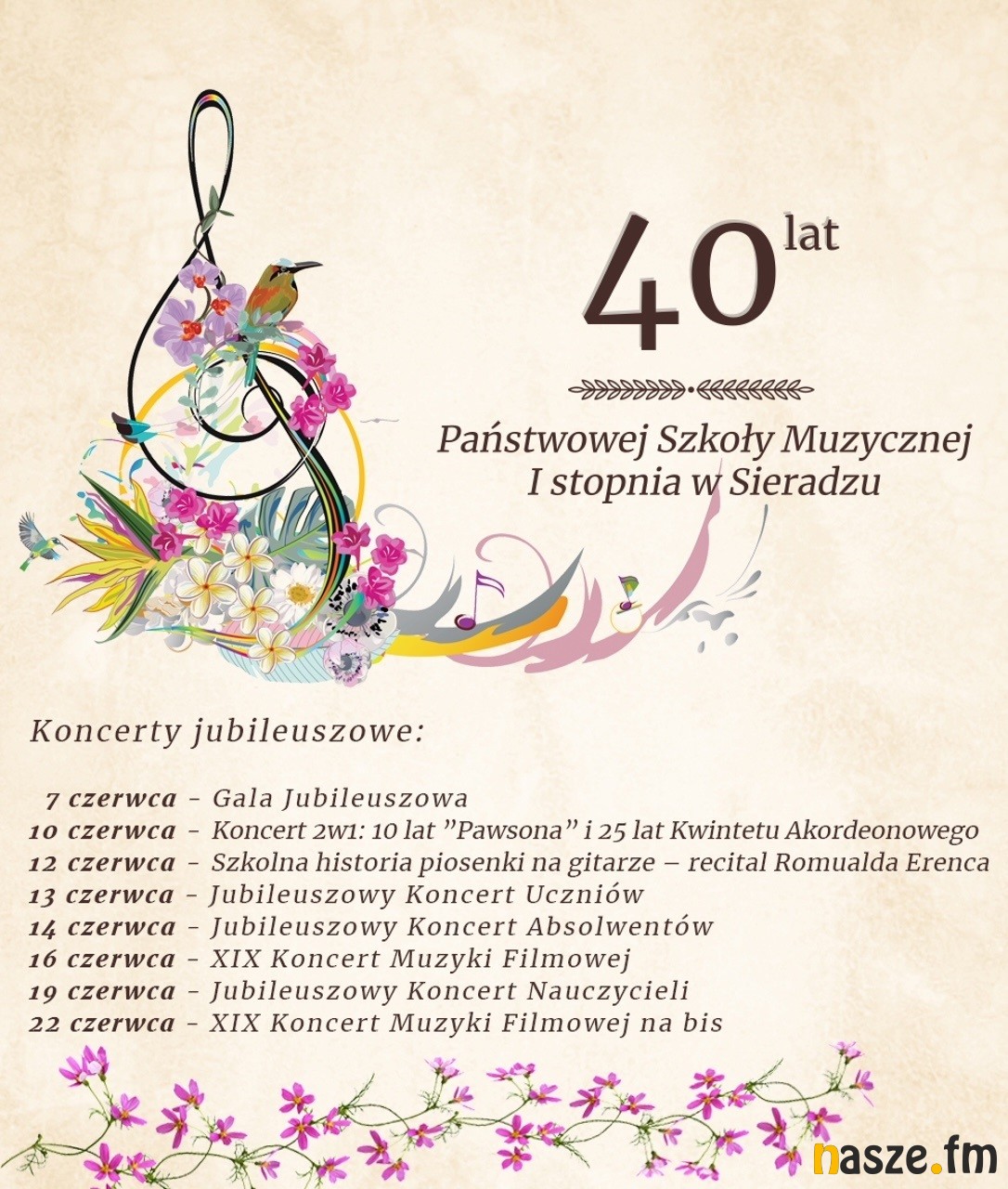 W czerwcu szkoła zaplanowała cykl koncertów jubileuszowych, wszystkie rozpoczną się o godz. 17:00: