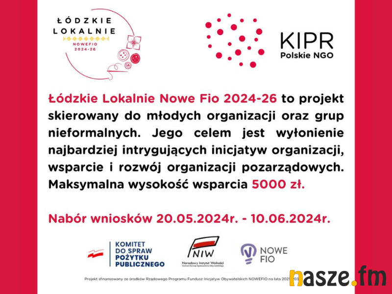 20 maja 2024 r. - Ruszył nowy projekt Łódzkie Lokalnie Nowe Fio 2024-26, który jest skierowany do młodych organizacji pozarządowych oraz grup nieformalnych. Jego celem jest wyłonienie interesujących inicjatyw oraz wsparcie i rozwój organizacji pozarządowych.