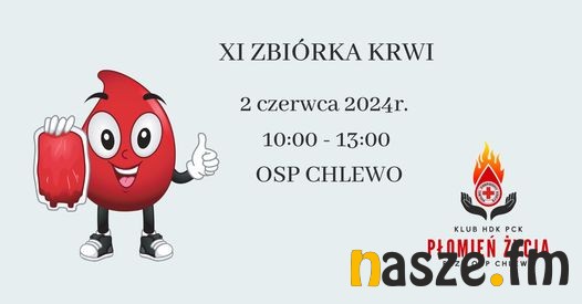 Ochotnicza Straż Pożarna z miejscowości Chlewo (gm. Goszczanów, pow. sieradzki) organizuje w przyszłym miesiącu kolejną zbiórkę krwi. Płynem życia będzie można podzielić się w niedzielę 2.06.br.