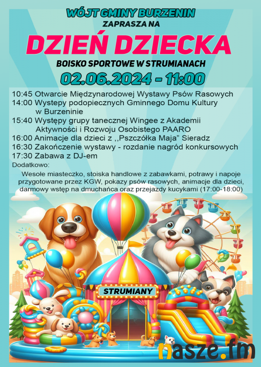 Tego dnia w Strumianach będzie też wielkie wesołe miasteczko i część artystyczna. Nie zabraknie zabaw z animatorami i zabawy z DJ'em. Wydarzenie odbędzie się w godz. 10:45 - 17. Szczegóły na plakacie.