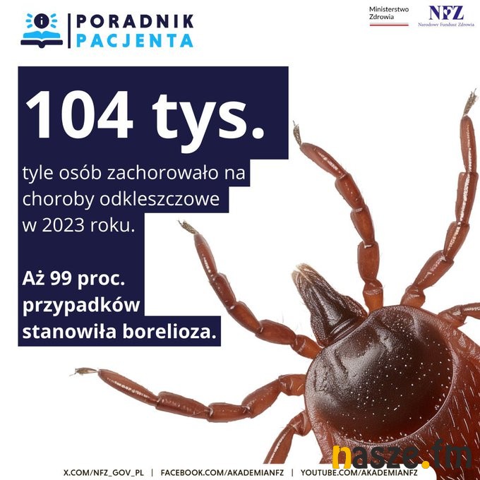 W 2023 r. ponad 104 tys. osób zachorowało na choroby odkleszczowe, wśród których 99% stanowiła borelioza. W najnowszym raporcie Narodowego Funduszu Zdrowia dotyczącym chorób odkleszczowych widać również wyraźną sezonowość zachorowań.