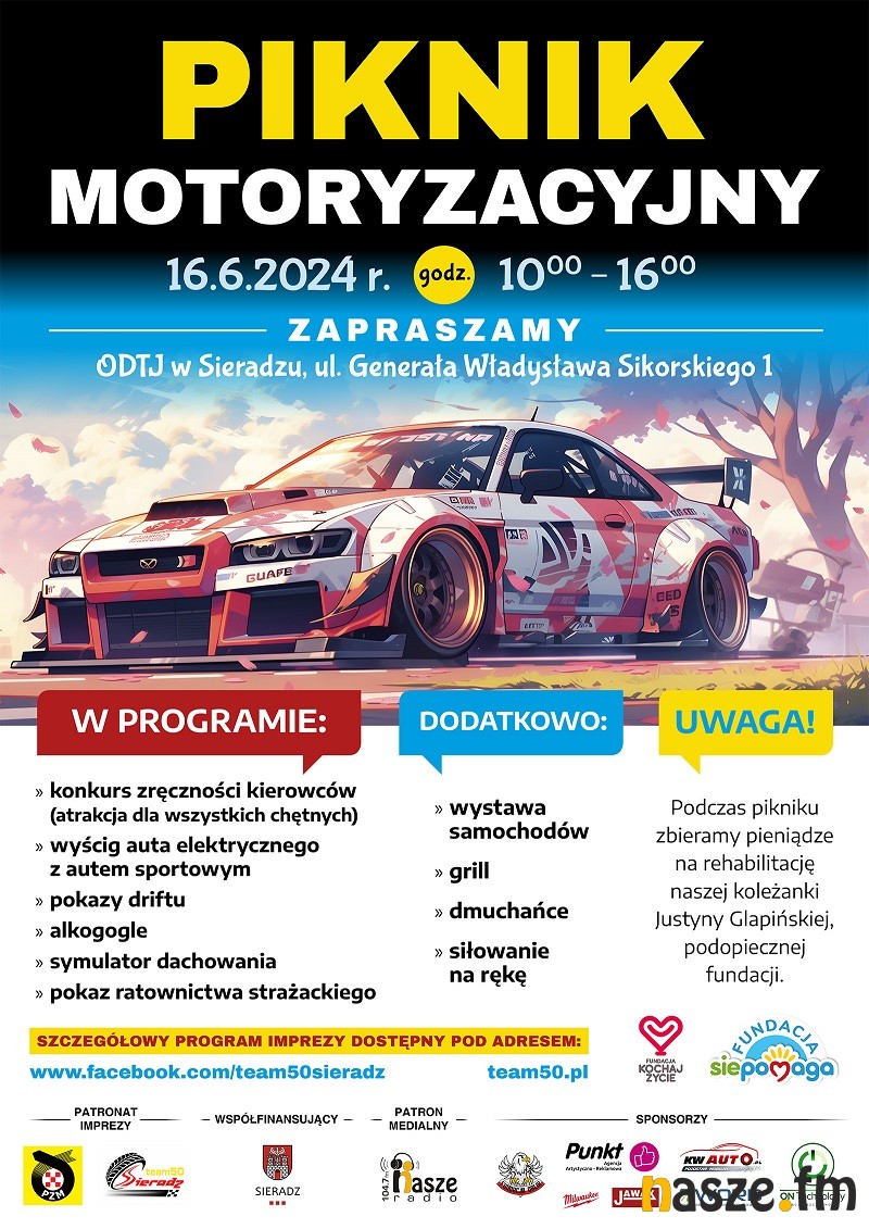 Sieradzkie Stowarzyszenie Sportu Motorowego Team50 zaprasza na wyjątkowy Piknik Motoryzacyjny, który odbędzie się 16.06.2024 (niedziela) na terenie ODTJ w Sieradzu. To doskonała okazja, by spędzić aktywnie czas w gronie rodziny i przyjaciół z motoryzacyjnym motywem na tapecie.