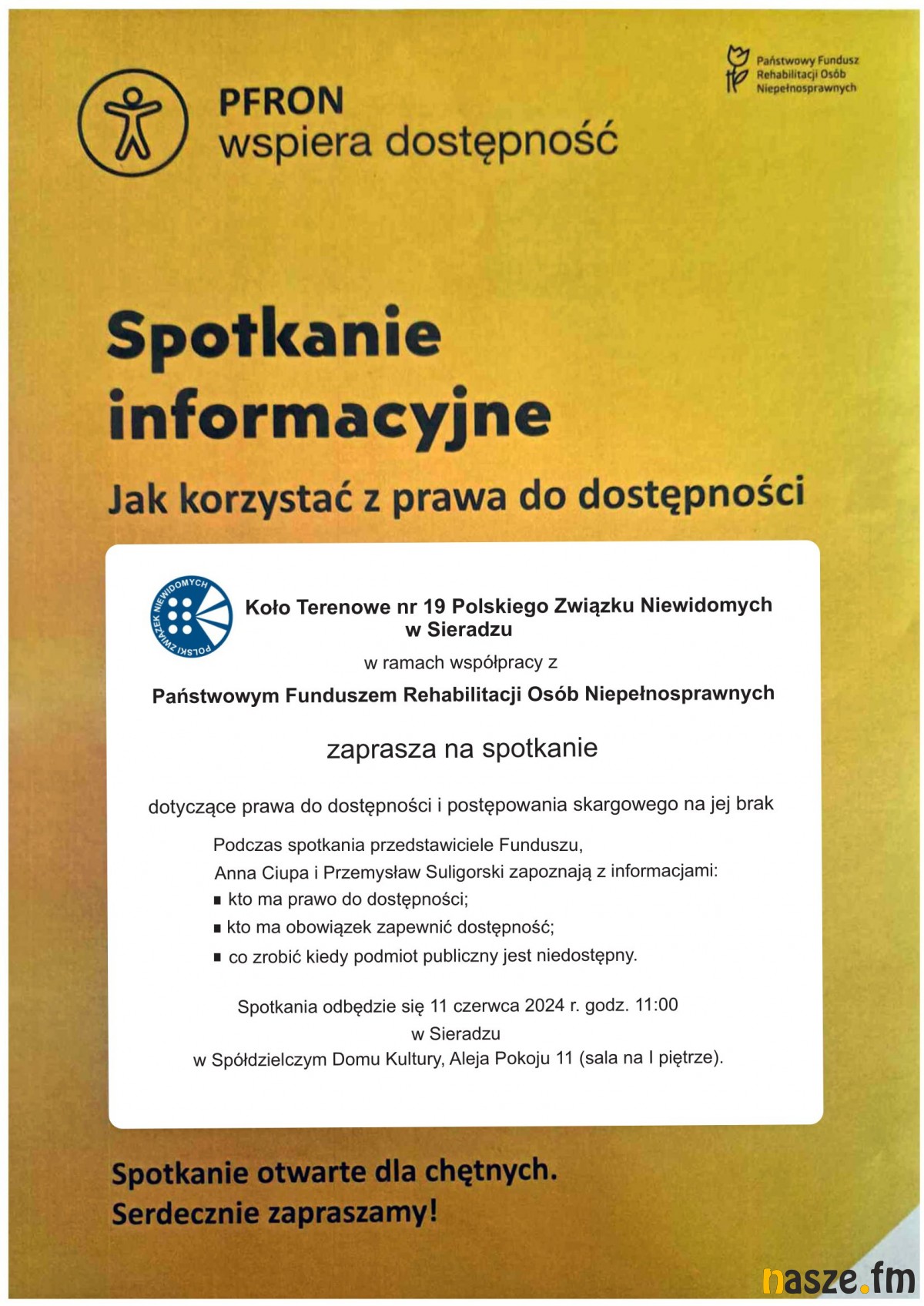 Koło Terenowe Polskiego Związku Niewidomych zaprasza na spotkanie dotyczące prawa do dostępności i postępowania skargowego na jej brak w instytucjach publicznych.