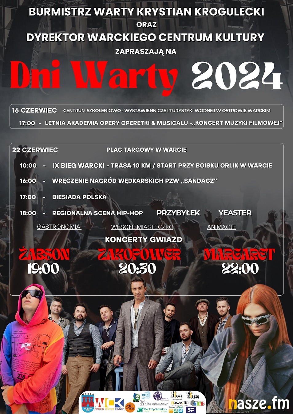 Żabson, Zakopower i Margaret uświetnią swoimi koncertami tegoroczne święto tego miasta. Na scenie zobaczymy też gwiazdy z naszego regionu. Nie zabraknie atrakcji dla całych rodzin. Wszystko odbywać się będzie dziś na Placu Targowym w Warcie.