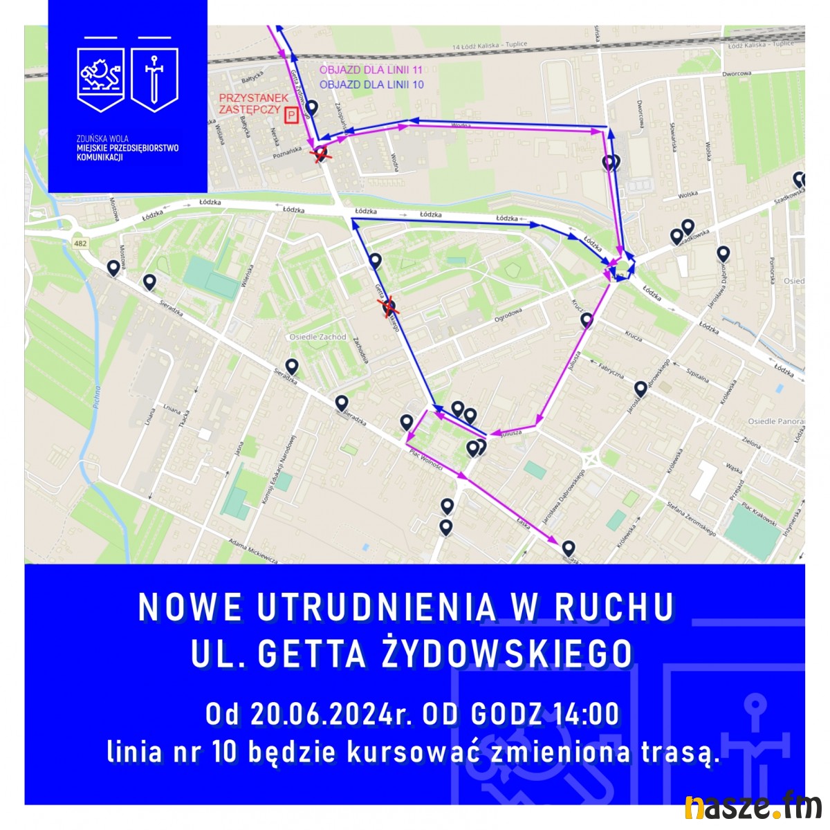 Od dziś, 20 czerwca, zmienia się organizacja ruchu w rejonie skrzyżowania ulic Łódzkiej z Getta Żydowskiego w Zduńskiej Woli, gdzie budowane jest rondo. Rozpoczynają się prace na drugiej jego części. Nastąpi zmiana w kursowaniu autobusów komunikacji miejskiej dla linii nr 10, które pojadą zmienioną trasą.