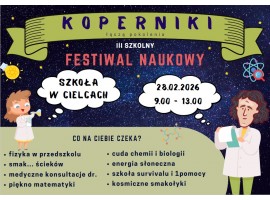 Szkoła Podstawowa im. Mikołaja Kopernika w Cielcach zaprasza 28 lutego na III Festiwal Naukowy Koperniki. W programie wydarzenia będą ekperymenty, konsultacje, zabawy i gry sportowe. To wydarzenie skierowane do wszystkich, młodszych i starszych.
