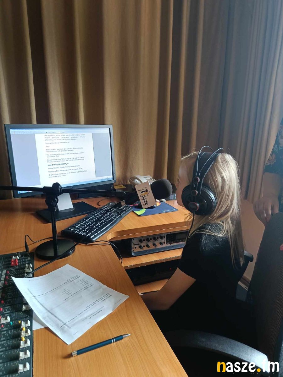 Największe zainteresowanie wzbudziło nasze studio, konsola, mikrofony i praca dziennikarza radiowego. Dzieci chętnie powiedziały kilka słów do mikrofonu: