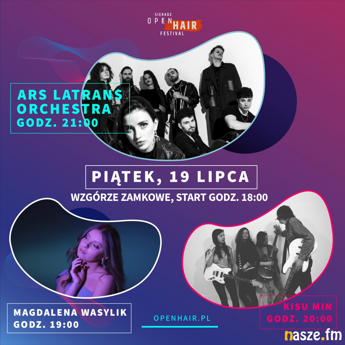 Na festiwalowej scenie pojawi się również sieradzki zespół After Hours oraz Magda Wasylik w repertuarze Disneya (piosenki, które wykonywała w oryginale w hitowej Krainie Lodu i ine). Sieradzki akcent ma również zespół Kisu Min, który zagra na Wzgórzu Zamkowym.