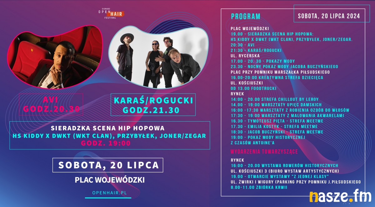 Niesamowicie ciekawie zapowiada się w tym roku również strefa MeetMe ulokowana na sieradzkim Rynku. W sobotę i niedzielę (20 i 21 lipca) będzie w niej można porozmawiać m.in. z Emilią Kostyk, infulencerką, uczestniczką projektu Team X, Kajetanem Szwedem - artystą, fotografem, twórcą kultowego warszawskiego konceptu barberskiego - Towarzystwo, Adamem Szulcem czy Tymoteuszem Piętą, założycielem renomowanej marki Hairmate, uznanym autorytetem w branży fryzjerskiej. Jego imponująca kariera obejmuje współpracę z prestiżowymi magazynami takimi, jak Vogue, Elle i Glamour, a także stylizacje włosów dla światowej klasy marek, w tym Yves Saint Laurent, Dior i Armani Beauty. Również w MeetMe nie zabraknie sieradzkiego akcentu. Gościem strefy będzie Aniela Wilk. To pseudonim literacki niepokornej polonistki, dla której niespodziewanie pisanie stało się dla niej sposobem na życie, odskocznią i wentylem bezpieczeństwa.