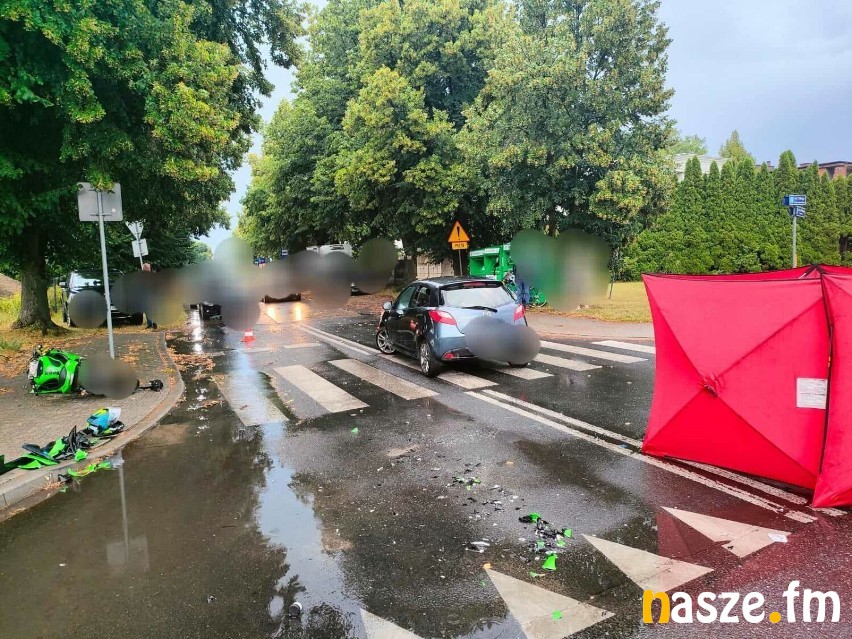 Nie żyje 24 - letni motocyklista, ofiara wypadku, do którego doszło dziś w Sieradzu na skrzyżowaniu ulic Oksińskiego i 1 Maja.