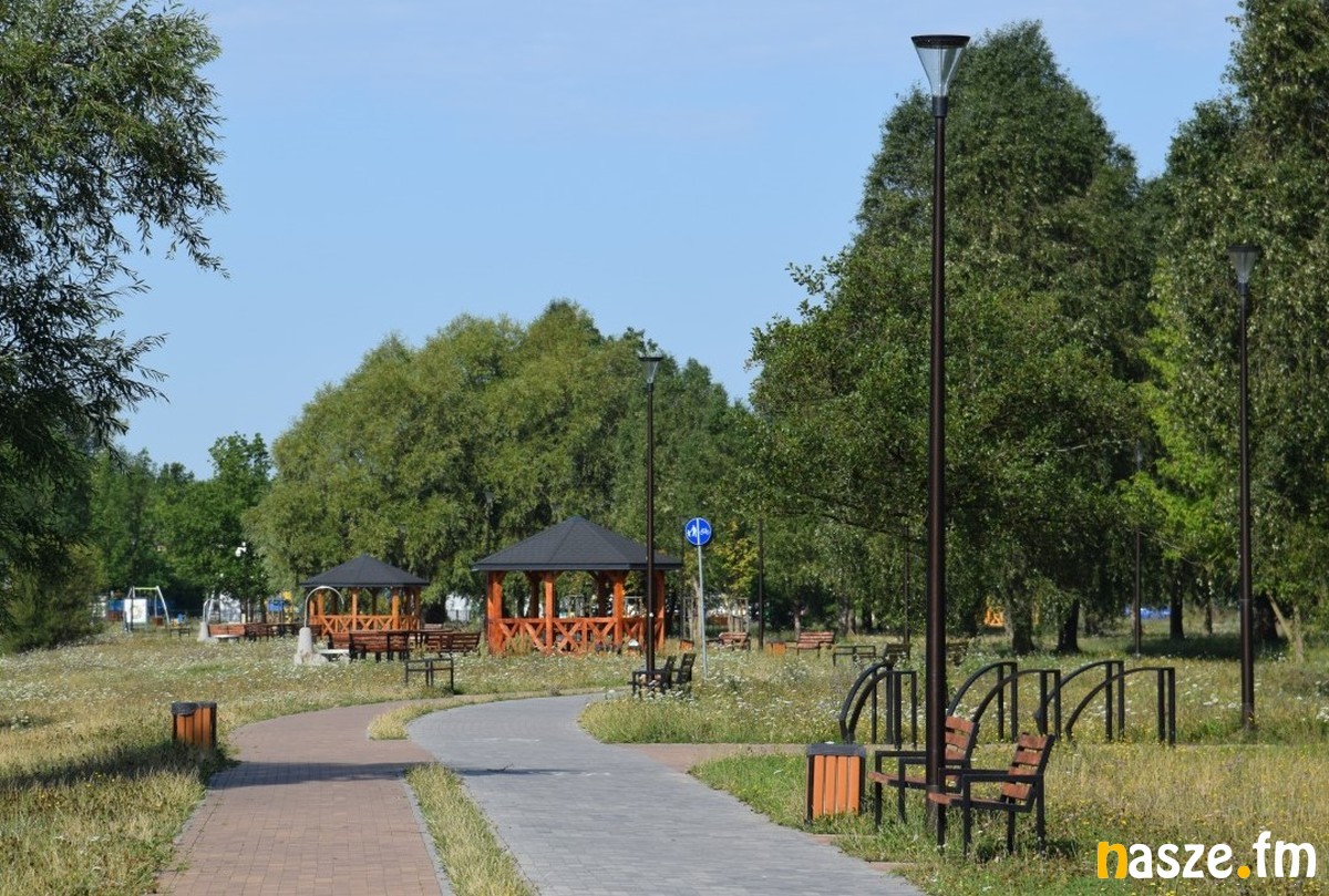 Parking dla samochodów osobowych wybudowany zostanie wraz z oświetleniem. Żużlowa nawierzchnia zastąpiona zostanie kostką typu eko-kwadrat. Wokół miejsc postojowych będą chodniki z szarej kostki betonowej oraz ścieżka rowerowa z kostki czerwonej. Zmieści się tam 60 pojazdów. Dwa miejsce przewidziano dla aut osób niepełnosprawnych. Parking oświetlony będzie 6 lampami z energooszczędnymi oprawami LED.