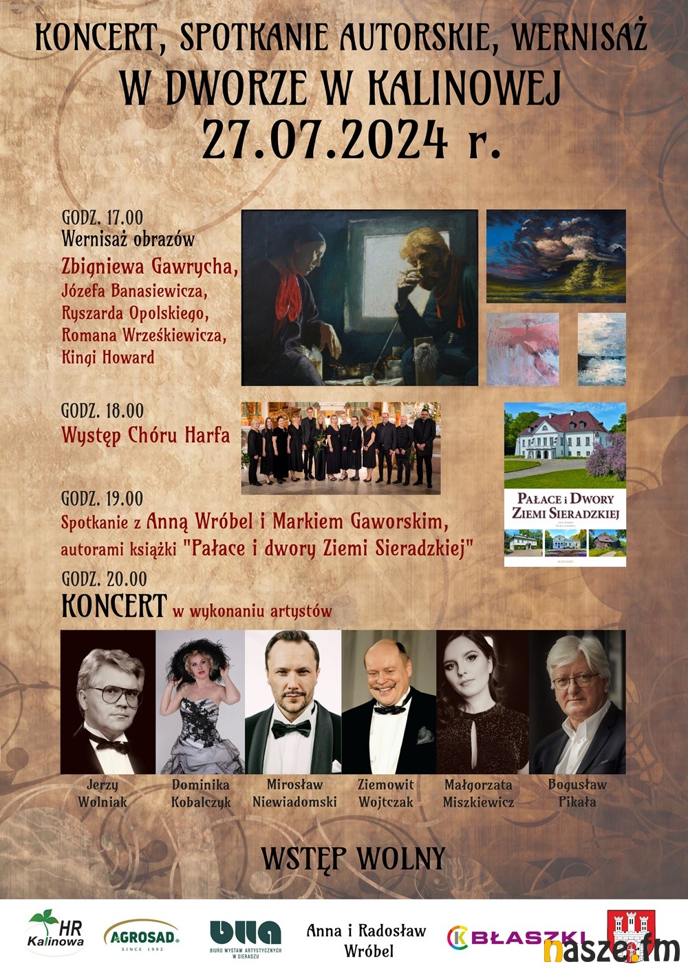 27 lipca w klimatycznym Dworze w Kalinowej odbędzie się spotkanie ze sztuką. W programie m.in. wernisaż obrazów, występ chóru Harfa z Błaszek a także spotkania autorskie z Anną Wróbel i Markiem Gaworskim. Udział w wydarzeniu jest bezpłatny.