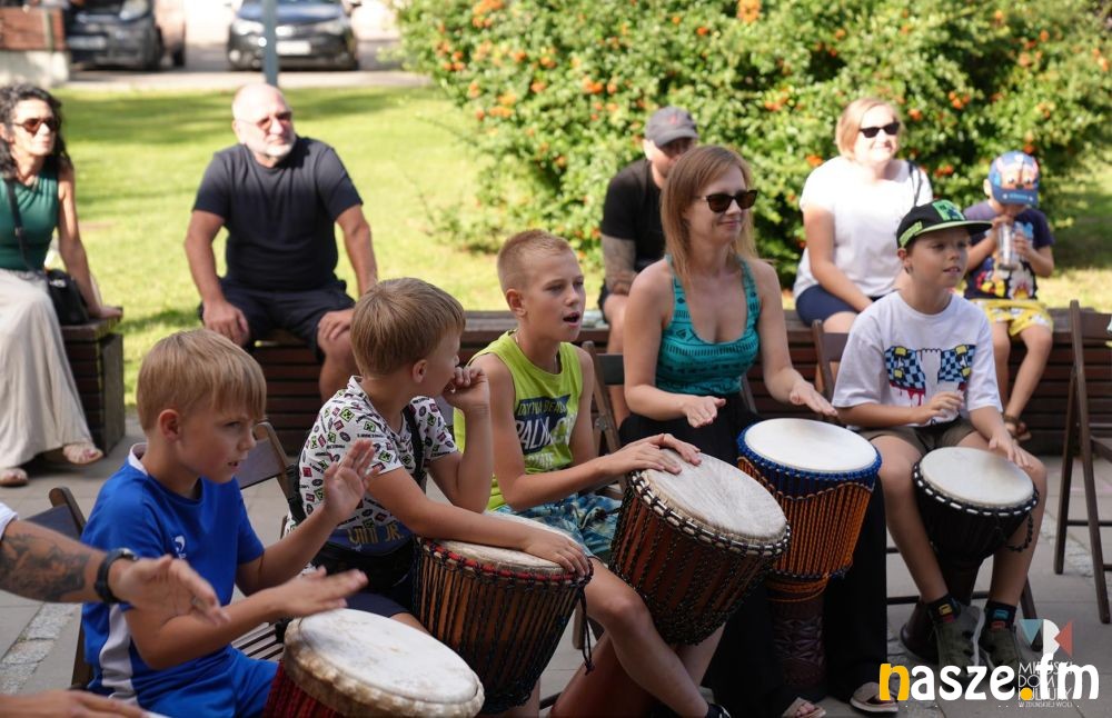 Wspólne rytmy i melodie można było wystukać podczas rodzinnych warsztatów bębniarskich z Krzysztofem Wawrzyniakiem i Krainą Bębnów.