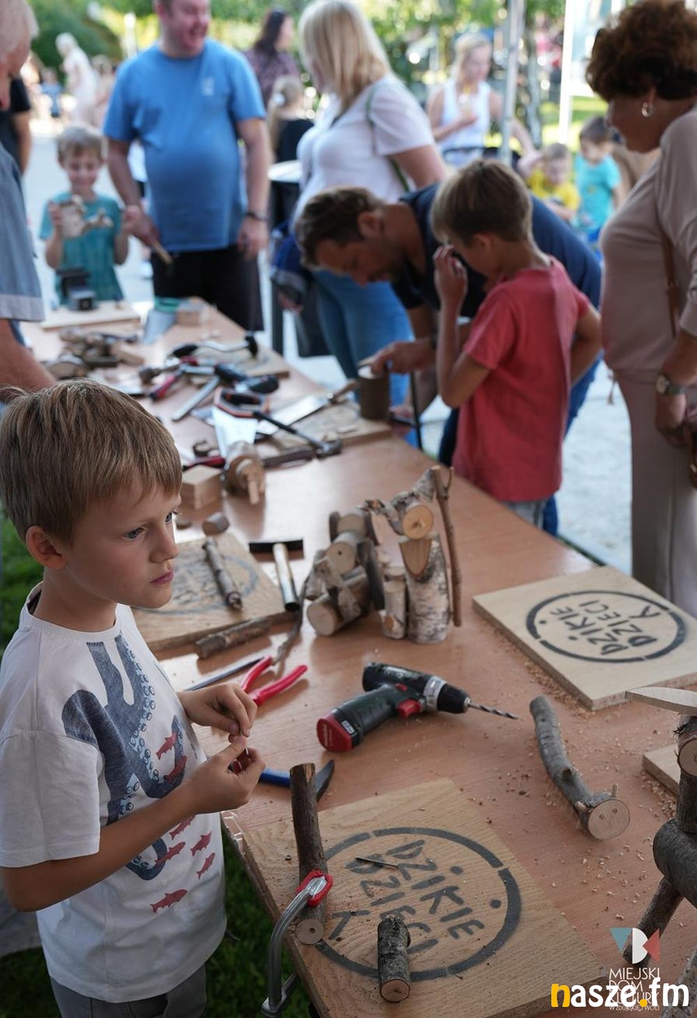 Ogromnym zainteresowaniem cieszyły się również warsztaty stolarskie, które przygotowała pracownia Dzikie Dzieci z Warszawy. Powstały najróżniejsze zabawki z drewna: stonogi, żyrafy, dinozaury, koty, psy i wiele innych.