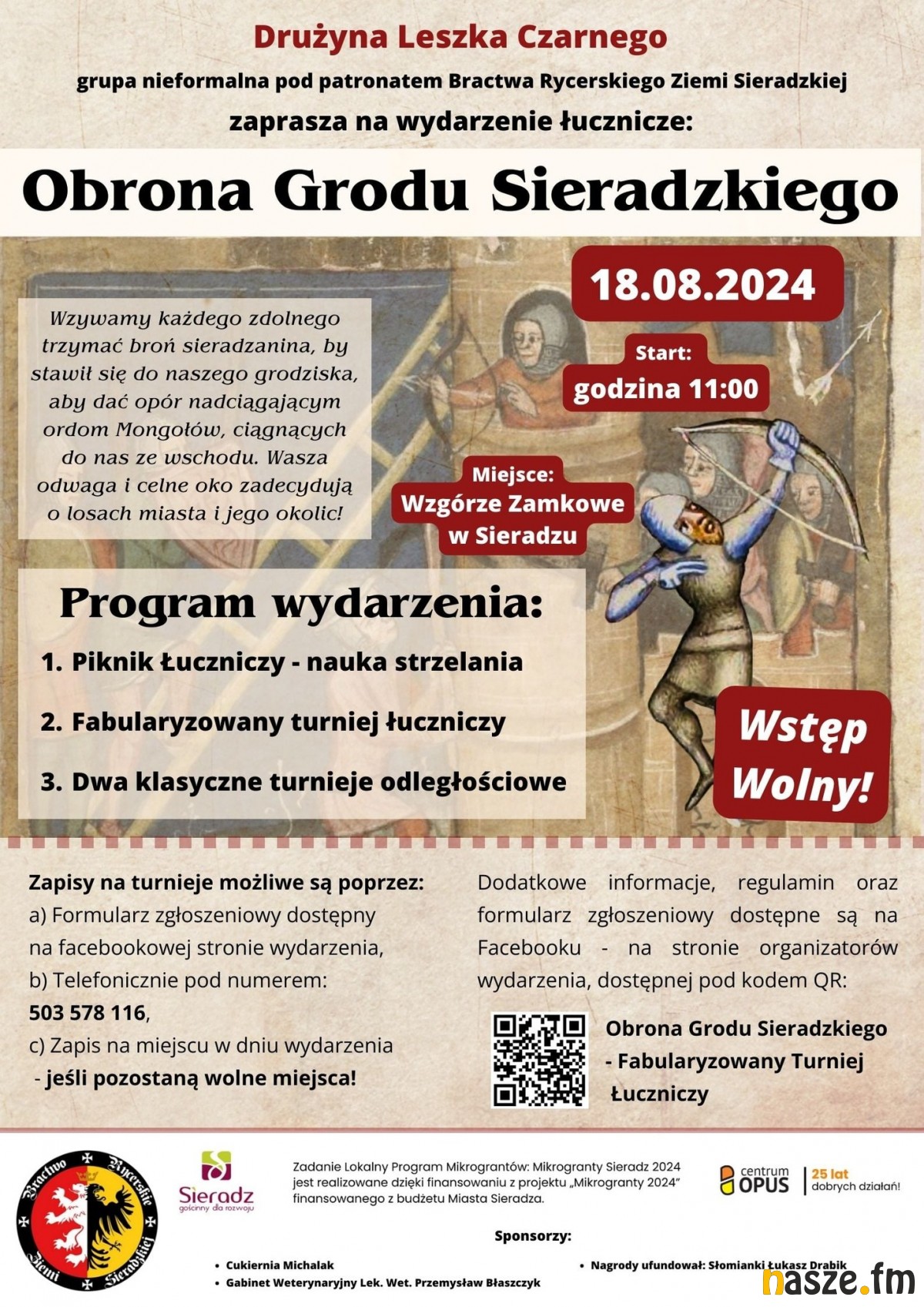 - Wzywamy każdego zdolnego trzymać broń sieradzanina do stawienia się do naszego grodziska, by dać opór nadciągającym ordom mongołów, ciągnących do nas ze wschodu. Wasza odwaga i celne oko zadecydują o losach miasta naszego i jego okolic! - zachęcają do udziału organizatorzy.
