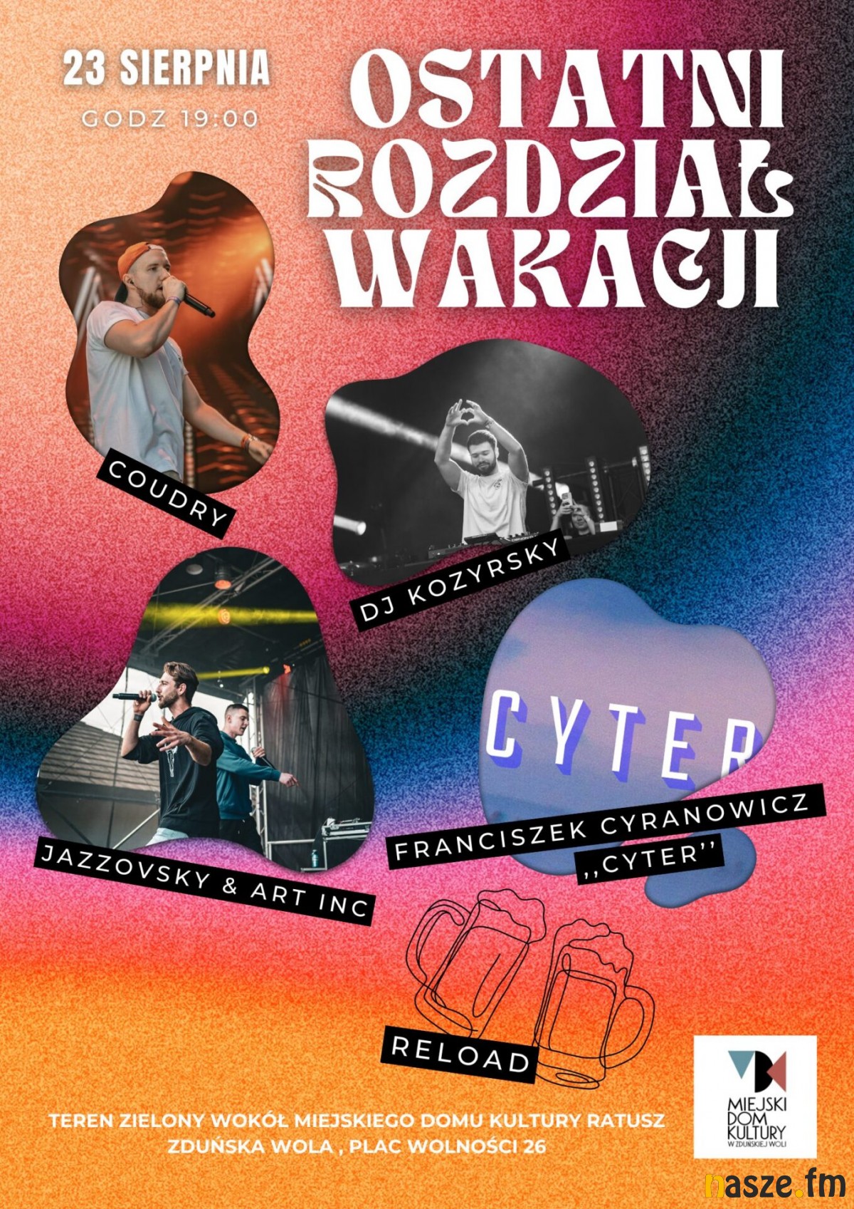 Na letniej scenie muzycznej przy Miejskim Domu Kultury Ratusz zagrają: CYTER (Zduńska Wola), JAZZOVSKY & ART INC (Zduńska Wola), COUDRY & KOZYRSKY (Warszawa, Gdańsk).