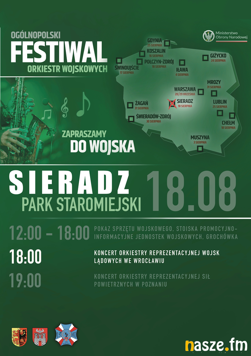 Zwieńczeniem całości będzie coś miłego dla ucha. W sieradzkim amfiteatrze wystąpią: o godz. 18 Orkiestra Reprezentacyjna Wojsk Lądowych z Wrocławia i godzinę później Orkiestra Reprezentacyjna Sił Powietrznych z Poznania. Wstęp wolny.