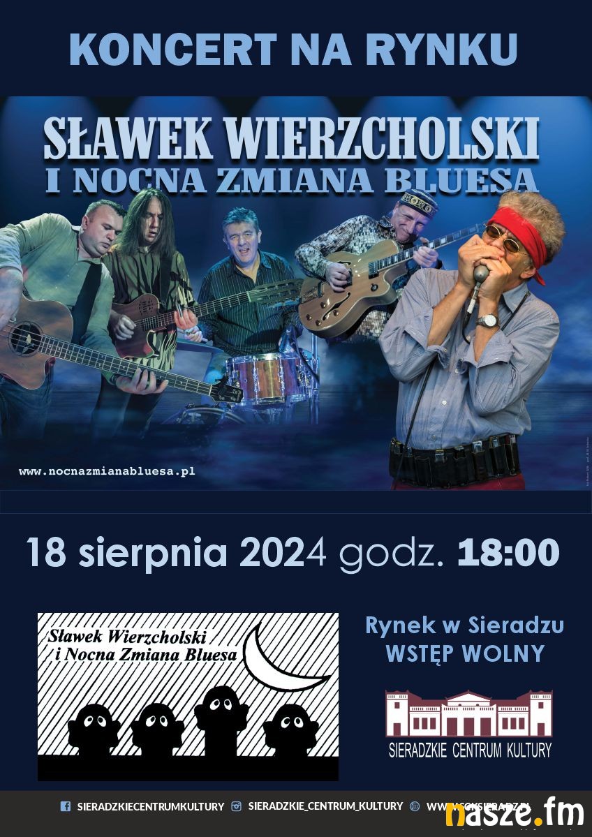 W niedzielę na Rynku w Sieradzu odbędzie się kolejny bluesowy koncert. Sieradzkie Centrum Kultury tym razem zaprasza na koncert Sławka Wierzcholskiego i Nocnej Zmiany Bluesa.