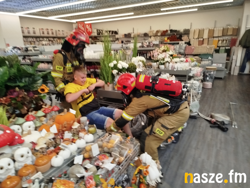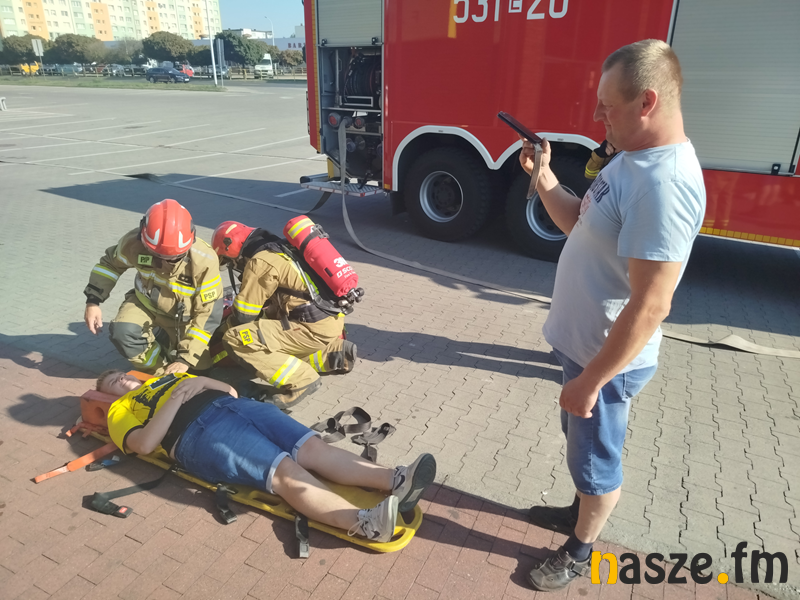 A potem kolejne atrakcje. W jednej z galerii handlowych, gdzie przeprowadzona została obowiązkowa próbna ewakuacja na wypadek pożaru, Kacper został pozorantem. Odegrał rolę osoby poszkodowanej, która nie zdołała opuścić galerii. Został odnaleziony i ewakuowany z budynku przez rotę strażaków. Pomagał potem zwijać węże strażackie.