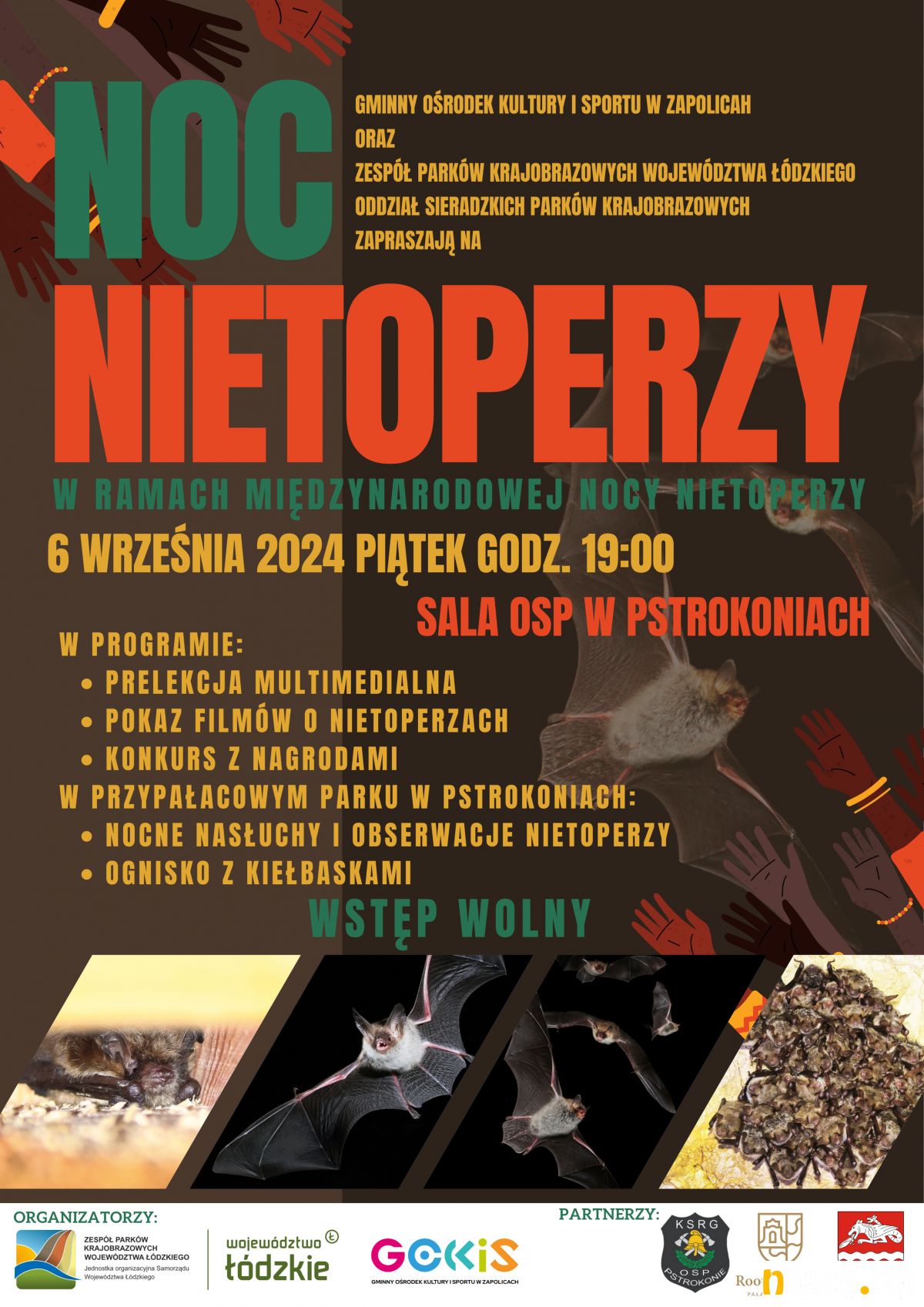 Gminny Ośrodek Kultury i Sportu w Zapolicach oraz Zespół Parków Krajobrazowych Województwa Łódzkiego Oddział Sieradzkich Parków Krajobrazowych zapraszają jutro, 6 września, na Noc Nietoperzy. Wydarzenie organizowane jest w ramach Międzynarodowej Nocy Nietoperzy.