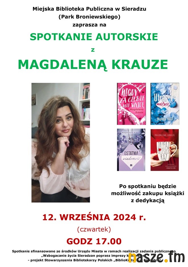 Pisarka przyjedzie w czwartek do Sieradza na zaproszenie Miejskiej Biblioteki Publicznej. Spotkanie z autorką popularnych powieści obyczajowych zaplanowano na godz. 17;00 w siedzibie biblioteki przy ul. Polnej.