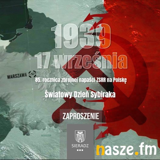 W Sieradzu obchody 85. rocznicy agresji Związku Radzieckiego na Polskę, która łączy się z obchodami Światowego Dnia Sybiraka rozpocznie msza święta za Ojczyznę w kościele garnizonowym. To o godz. 16:00. Godzinę później przewidziano przemarsz przed pomnik Sybiraków w ulicy Rycerskiej, gdzie będzie okolicznościowe przemówienie, apel pamięci i salwa honorowa, po czym składane będą kwiaty i zapalane znicze.