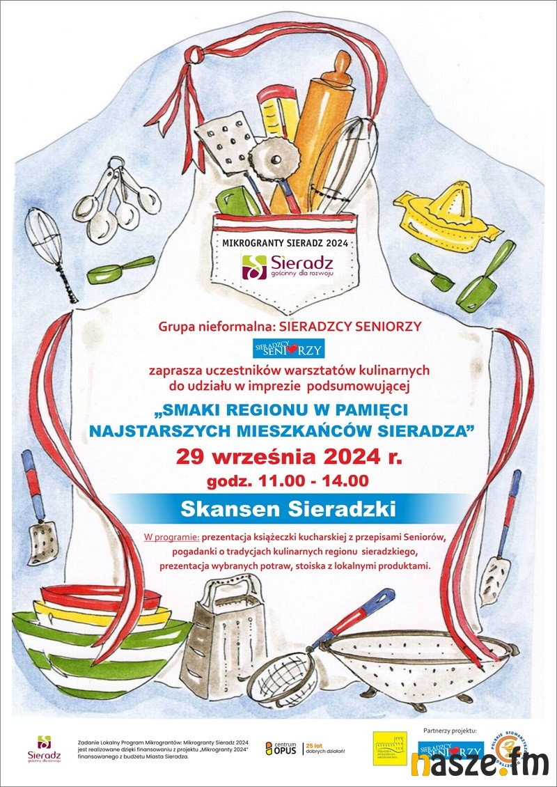 W niedzielę, 29 września, w godzinach 11.00-14.00 Sieradzcy Seniorzy zapraszają do Skansenu na spotkanie kończące projekt "Smaki regionu w pamięci najstarszych mieszkańców Sieradza".