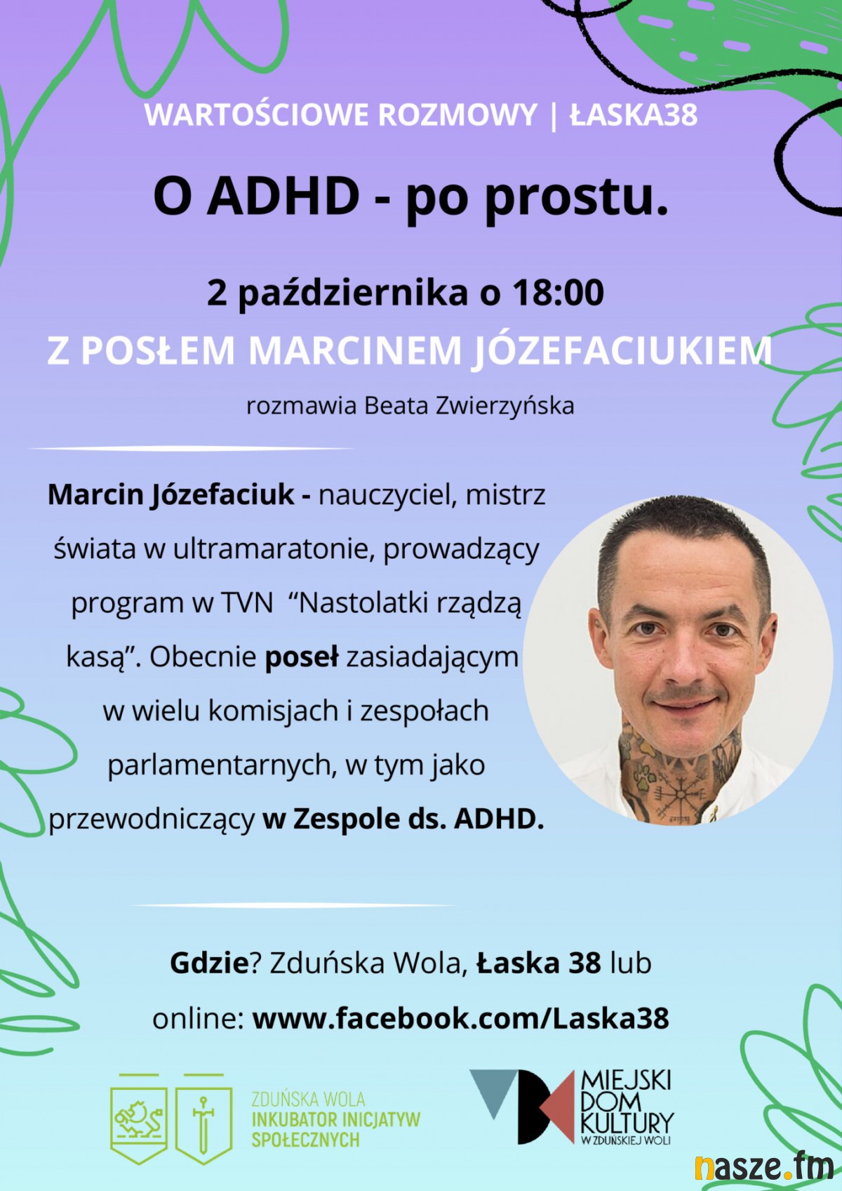 Spotkanie z cyklu „Wartościowe rozmowy” zaplanowano na środę, 2 października o godz. 18:00, w Inkubatorze Inicjatyw Społecznych przy ul. Łaskiej 38 w Zduńskiej Woli. Temat to ”O ADHD - po prostu". Z posłem Marcinem Józefaciukiem rozmawiać będzie Beata Zwierzyńska.
