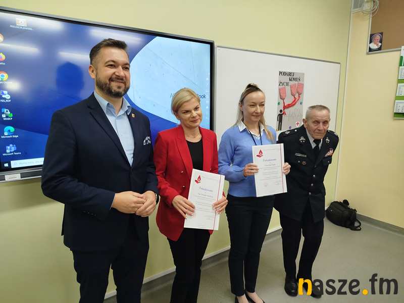 - To jest jedyna szkoła, która ściśle z nami współpracuje i to już od trzech lat. To się doskonale nam układa i stąd nasza chęć uhonorowania placówki oraz dwóch pań, które opiekują się szkolnym kołem krwiodawstwa. Szkoła otrzymała medal upamiętniający półwiecze naszego klubu, a panie specjalne dyplomy. Dla młodzieży wygłosiliśmy także pogadankę o funkcjonowaniu polskiego i naszego regionalnego krwiodawstwa - mówi dh Ryszard Chrzanowski, prezes Klubu HDK PCK Strażaków w Sieradzu.