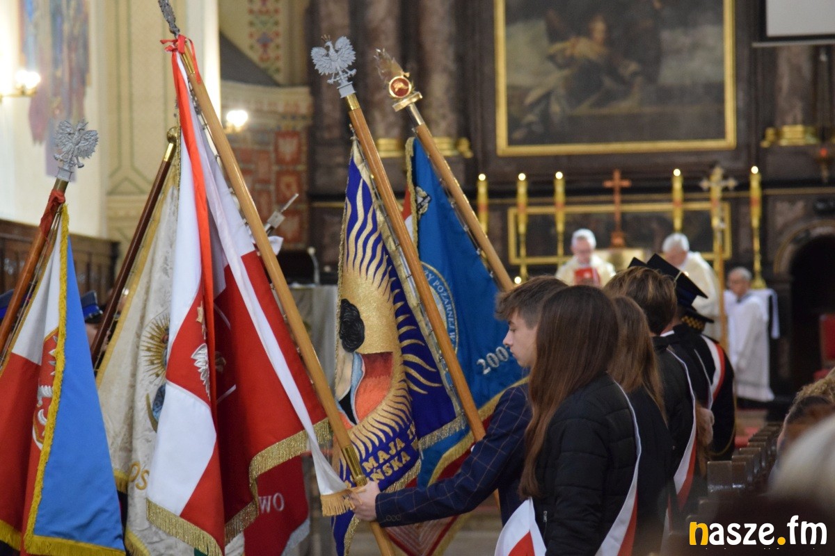 Przed Bazyliką Mniejsza, która jest Sanktuarium Urodzin i Chrztu Świętego Maksymiliana Kolbego, zebrały się poczty sztandarowe i uczestnicy obchodów. Złożono kwiaty przy pomniku świętego, jaki znajduje się przed świątynią. W bazylice odprawiona została msza święta w intencji miasta i mieszkańców Zduńskiej Woli.