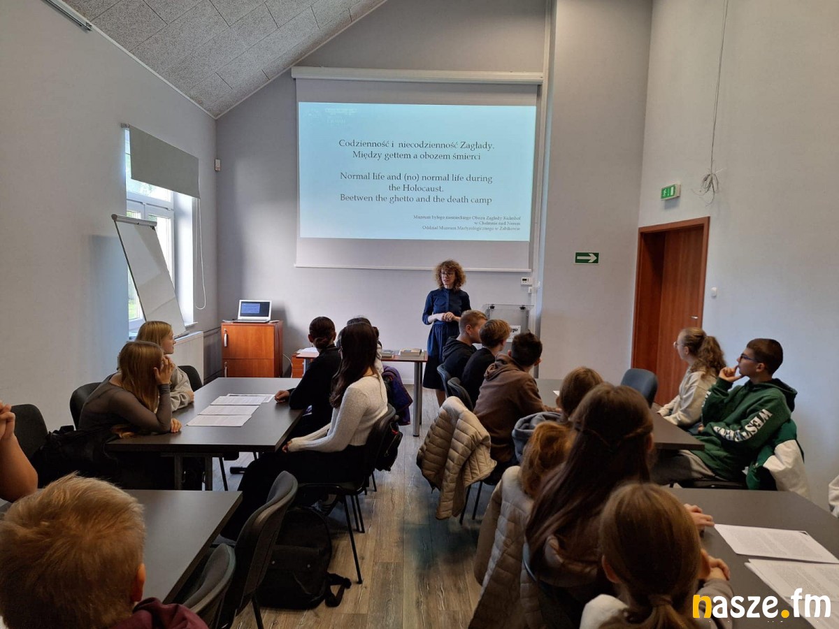 Tym razem do Muzeum byłego niemieckiego Obozu Zagłady Kulmhof w Chełmnie nad Nerem pojechali uczniowie ze Szkoły Podstawowej w Jakubicach, Szkoły Podstawowej w Rossoszycy, Szkoły Podstawowej we Włyniu i z klasa 8 a Szkoły Podstawowej w Warcie - łącznie 42 uczniów. Uczestnicy tej wyjazdowej lekcji historii zwiedzili muzeum, wzięli udział w lekcji muzealnej, złożyli kwiaty i zapalili znicz pod Ścianą Pamięci w Lesie Rzuchowskim, upamiętniając w ten sposób żydowskich mieszkańców Warty, których tam zamordowano.