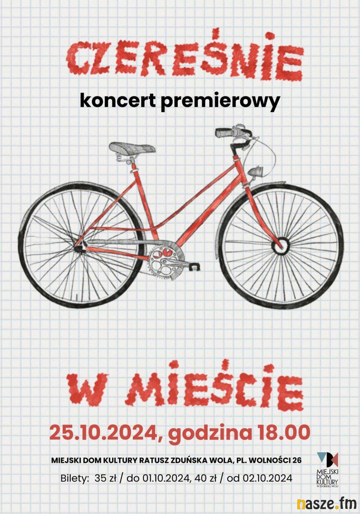 Koncert Czereśni 25 października, godzina 18.00, sala kameralna MDK Ratusz, pl. Wolności 26. Bilety do nabycia online lub w Kasie Ratusza.