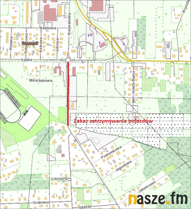 - ul. Świerkowa - zakaz zatrzymywania po obu stronach ulicy na odcinku od ul. Łaskiej do cmentarza.