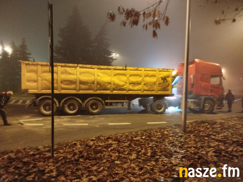 Niebezpieczne zdarzenie drogowe na rondzie im. prezydenta RP L. Kaczyńskiego w Sieradzu. W nocy 5.11.br. przewróciła się tam ciężarówka. Z ruchu był wyłączony jeden pas ruchu. Pojazd udało się postawić na kołach.