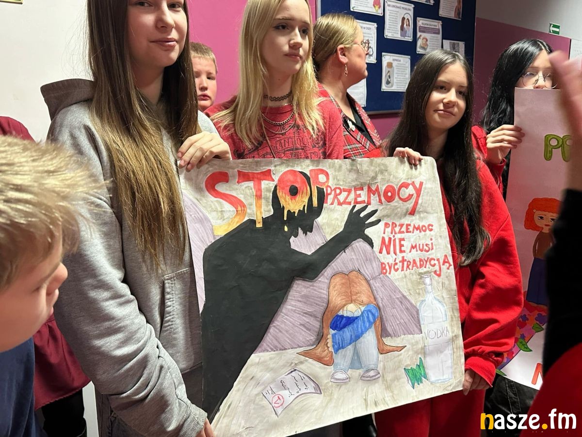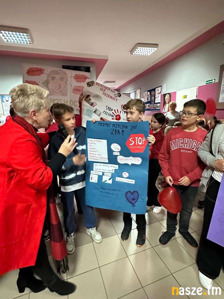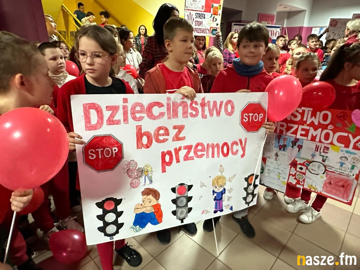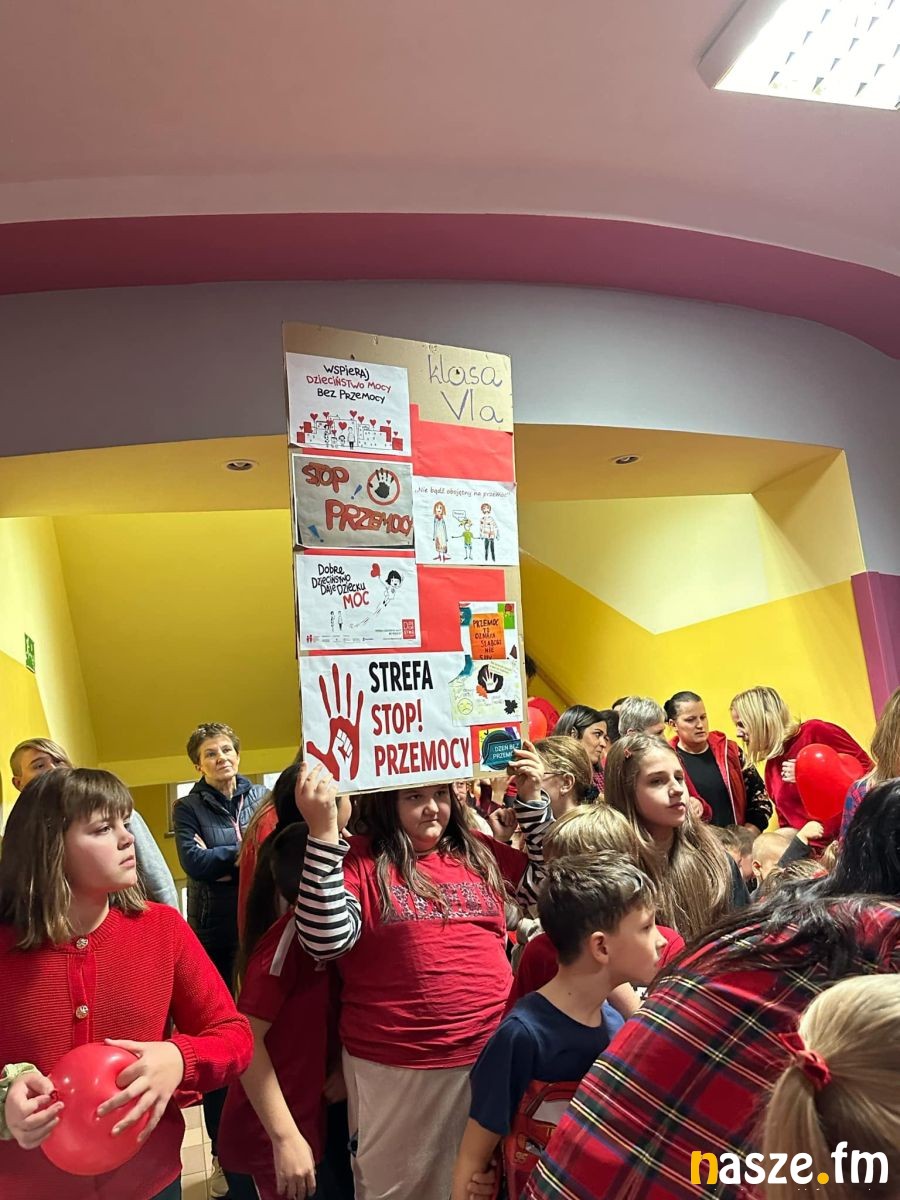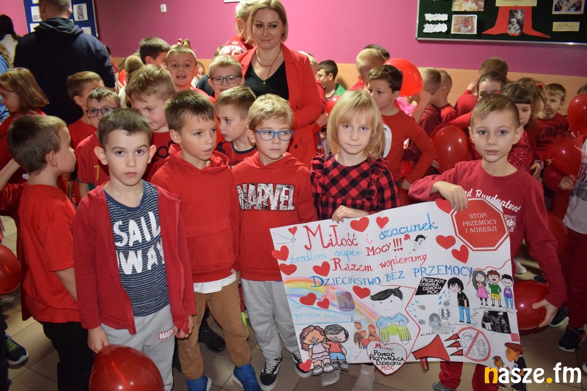 Cała społeczność szkolna uczestniczyła w szkolnym happeningu, w trakcie którego został głośno zadeklarowany sprzeciw wobec krzywdzenia dzieci i stosowania wobec nich przemocy, zaniedbania ze strony dorosłych oraz rówieśników.