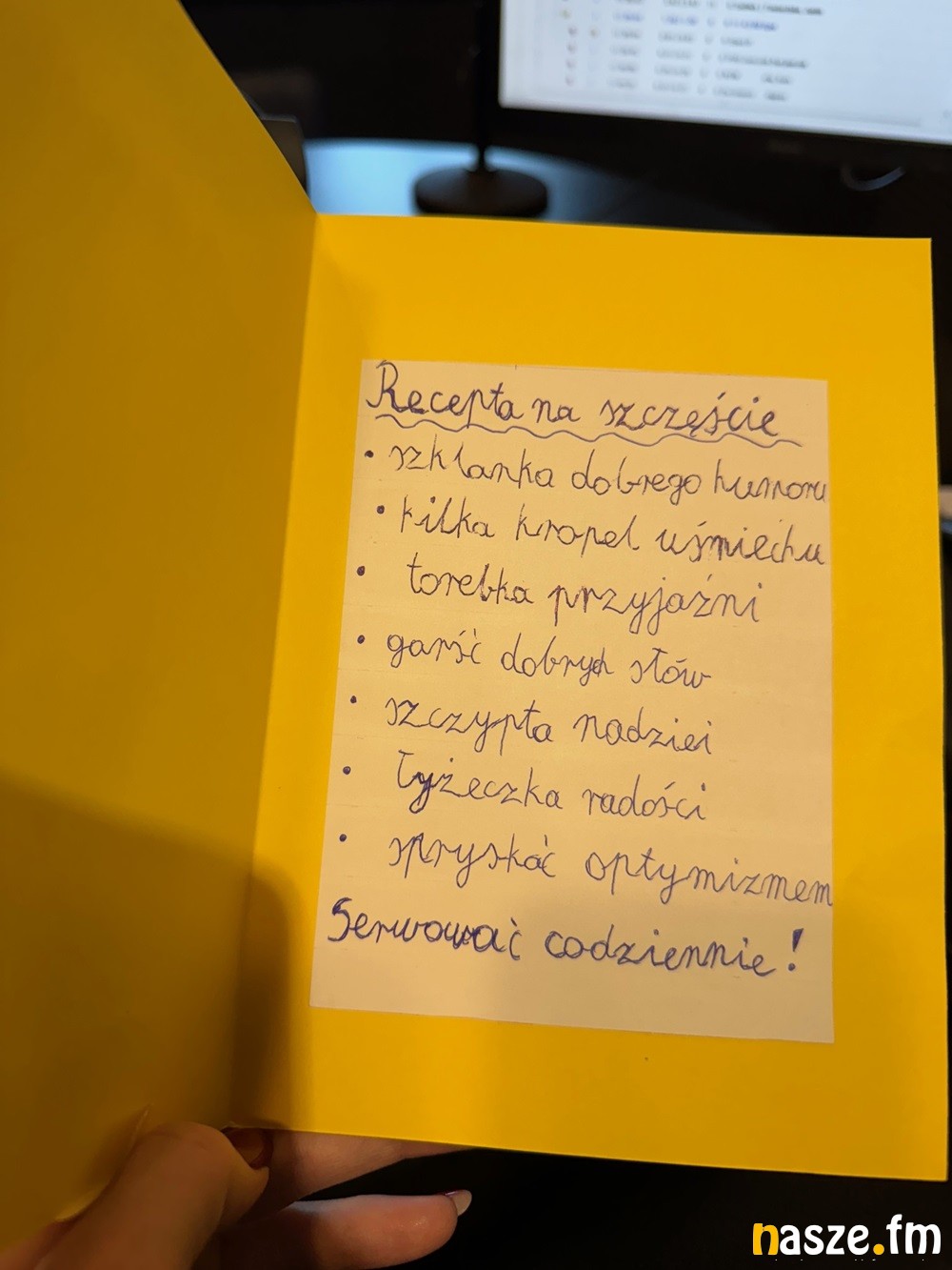 Na początek odwiedzili nas uczniowie ze Szkoły Podstawowej nr 10 w Sieradzu. Dostaliśmy piękną kartkę z receptą na szczęście. Młodzież na antenie przekazała też kilka dobrych, miłych słów: