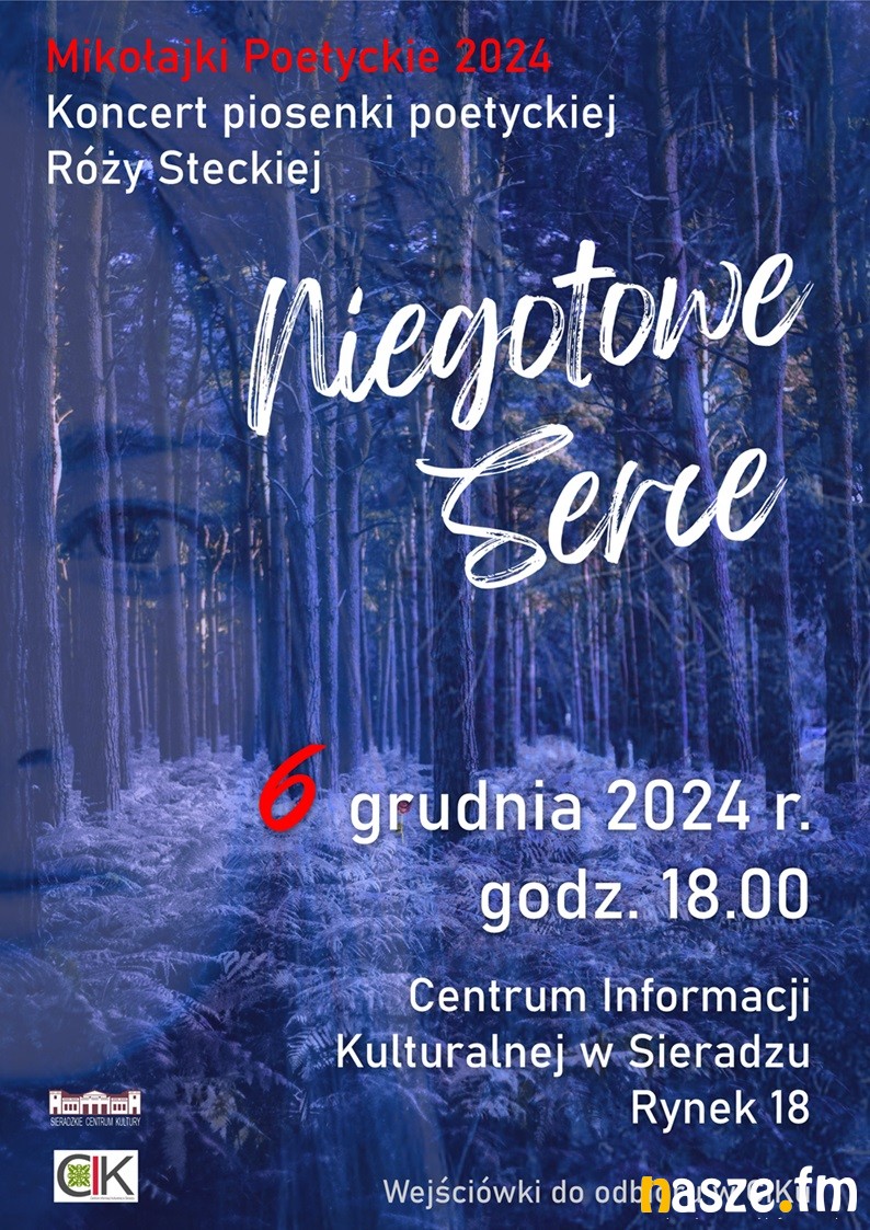 Wstęp na wydarzenie jest bezpłatny, obowiązują wejściówki, które można odebrać w Centrum Informacji Kulturalnej w Sieradzu (Rynek 18) w godzinach pracy Centrum.