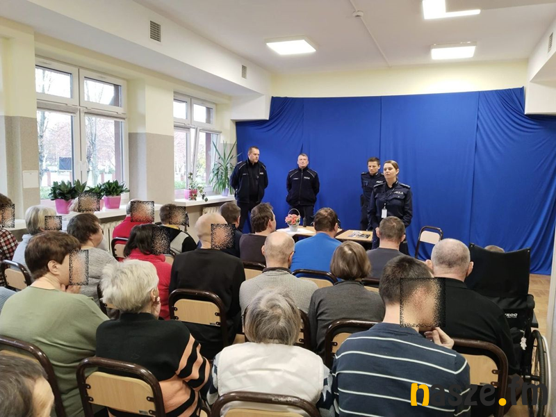 Policjanci uwrażliwili seniorów na sytuacje, w których mogą stać się ofiarą przestępstwa. Omówili jakie metody stosują oszuści, aby wyłudzić pieniądze, w tym m.in. „na wnuczka&rdquo, „pracownika socjalnego&rdquo, „na policjanta&rdquo, „na pracownika instytucji&rdquo, „pracownika banku&rdquo, „na zdalny pulpit”.