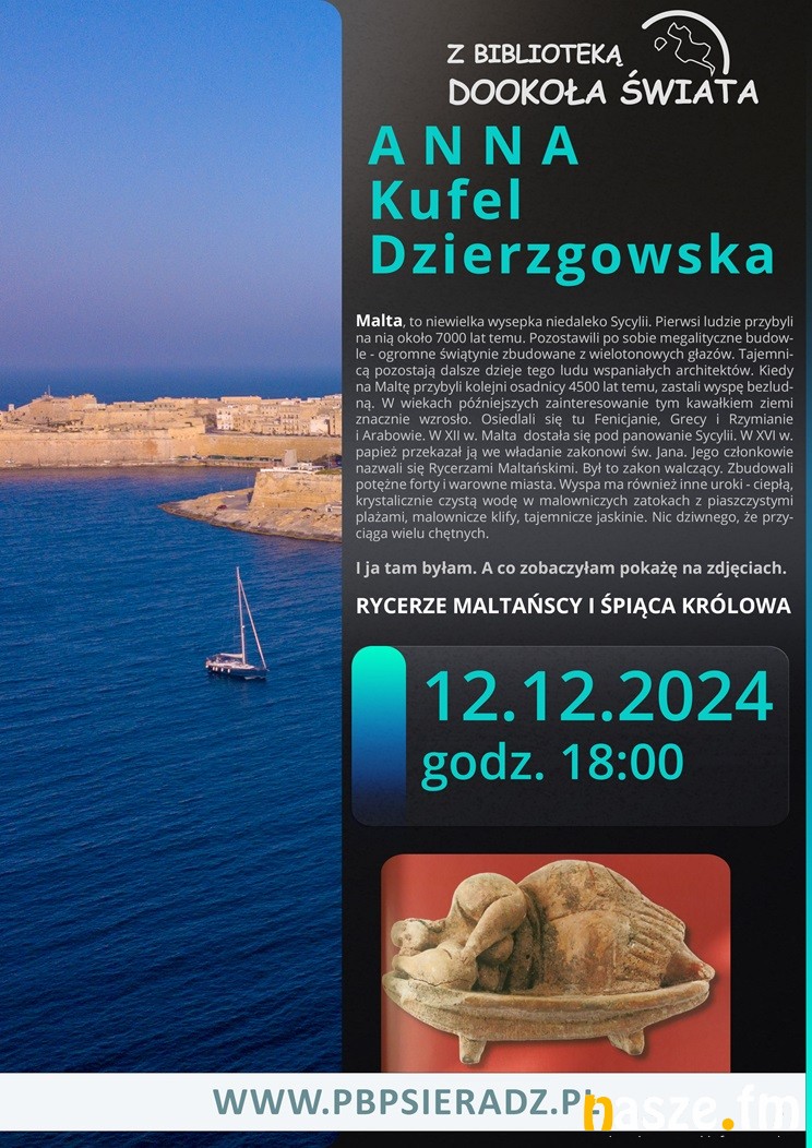 W bibliotece powiatowej w Sieradzu odbędzie się jutro spotkanie z sieradzką podróżniczką. Tym razem Anna Kufel-Dzierzgowska, zabierze gości książnicy w podróż po malowniczej Malcie, wyspie Morza Śródziemnego.