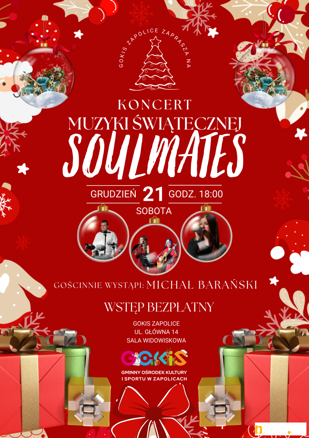 W sobotę, 21 grudnia, w świątecznym repertuarze wystąpi tam zespół SoulMates oraz Michał Barański. Nie zabraknie kolęd, pastorałek oraz znanych i lubianych świątecznych piosenek.