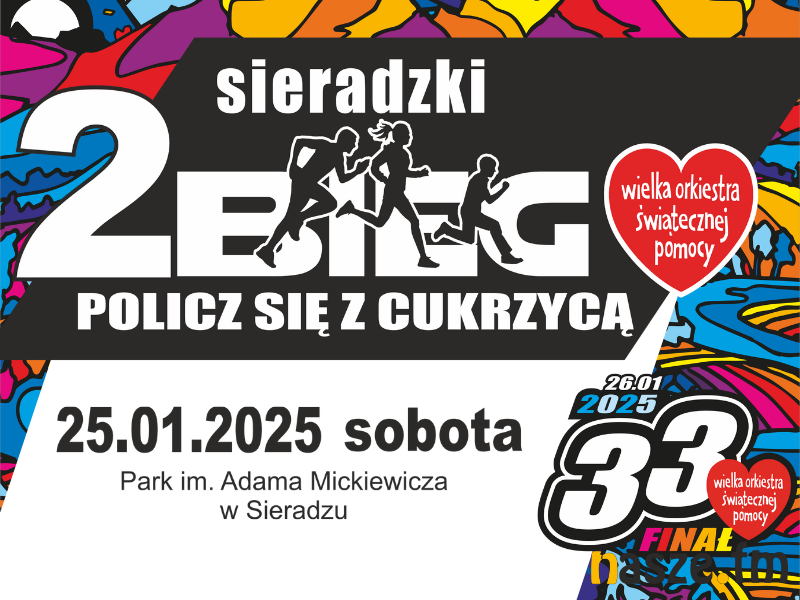 Po ogromnym sukcesie zeszłorocznego biegu organizatorzy po raz kolejny zapraszają, aby wesprzeć Wielką Orkiestrę Świątecznej Pomocy a przy okazji nieco pobiegać. Trwają zapisy na 2. Sieradzki Bieg "Policz Się Z Cukrzycą" - pozostało kilka ostatnich miejsc.