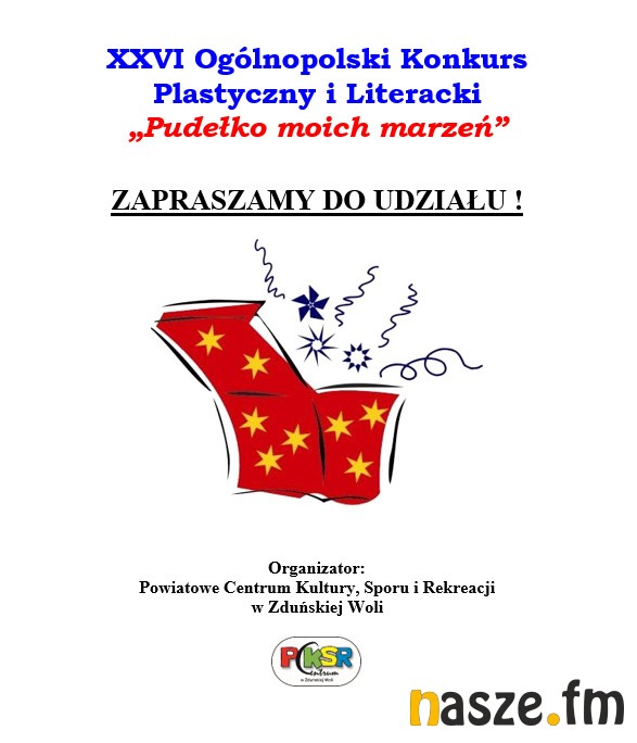 Powiatowy Młodzieżowy Dom Kultury „Na pięterku” w Zduńskiej Woli zaprasza do udziału w XXVI Ogólnopolskim Konkursie Plastycznym i Literackim "Pudełko moich marzeń". Prace można przysyłać do 7 lutego.