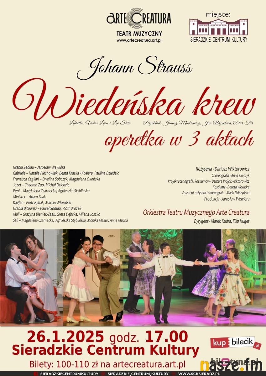 W niedzielę o godz. 17:00 w Teatrze Miejskim w Sieradzu będzie okazja, żeby zobaczyć barwny i roztańczony spektakl operetkowy w gwiazdorskim wykonaniu. Na scenie w rytmie walca pulsuje wiedeńska krew głównych bohaterów, rozbrzmiewają cudowne głosy i znane na całym świecie melodie.