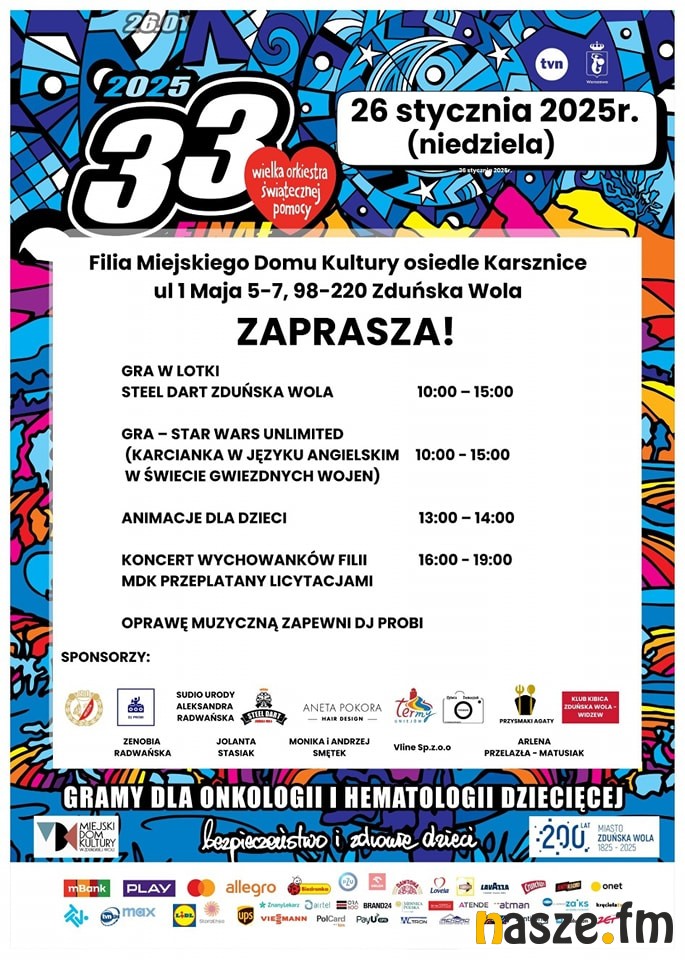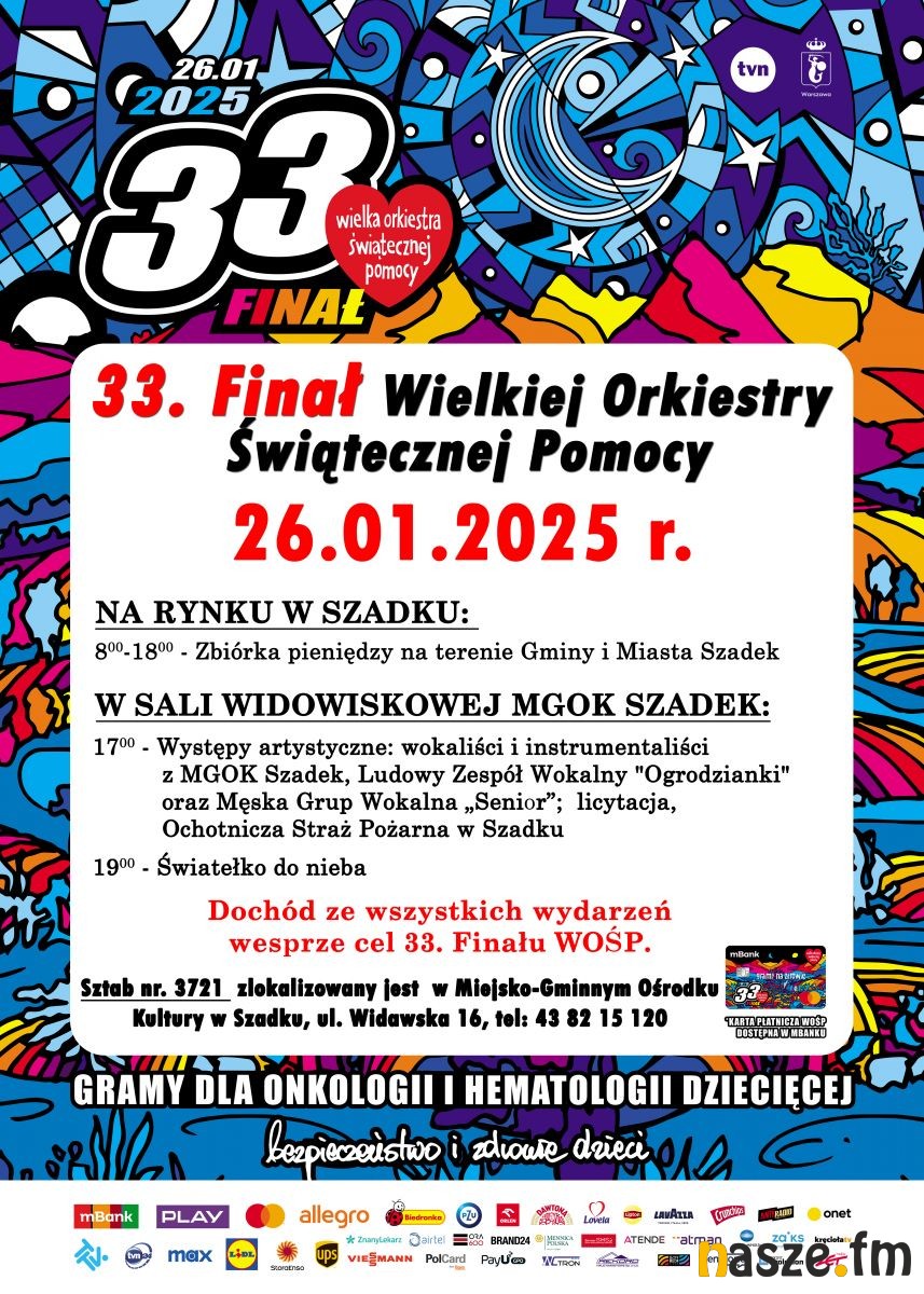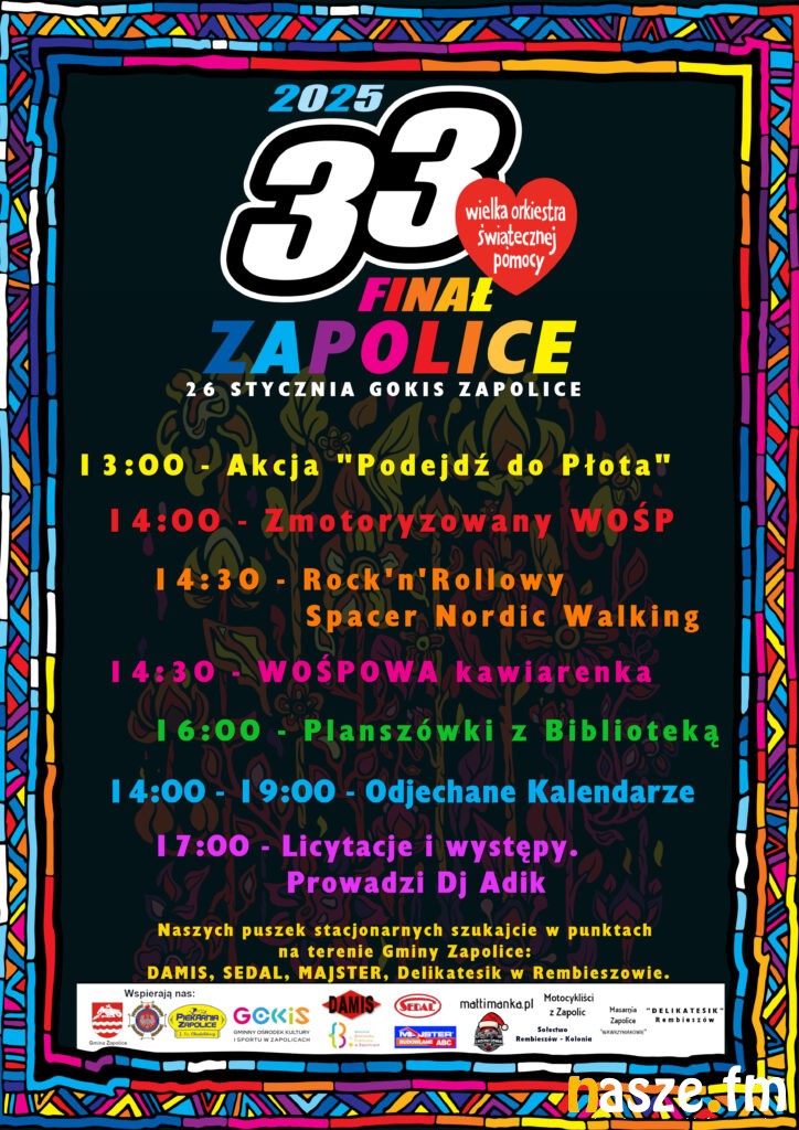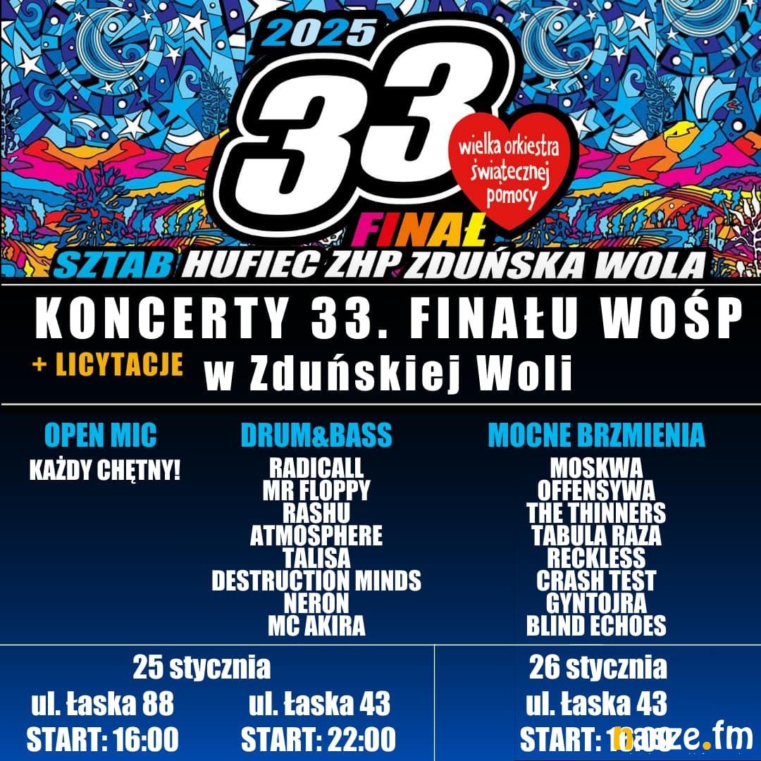 W najbliższą niedzielę, 26 stycznia, odbędzie się 33. Finał Wielkiej Orkiestry Świątecznej Pomocy. W tym roku celem zbiórki jest wsparcie onkologii i hematologii dziecięcej. Nasze Radio aktywnie włącza się w działania WOŚP, oferując na antenie tradycyjne licytacje. Sporo będzie się się też działo w całym naszym regionie.
